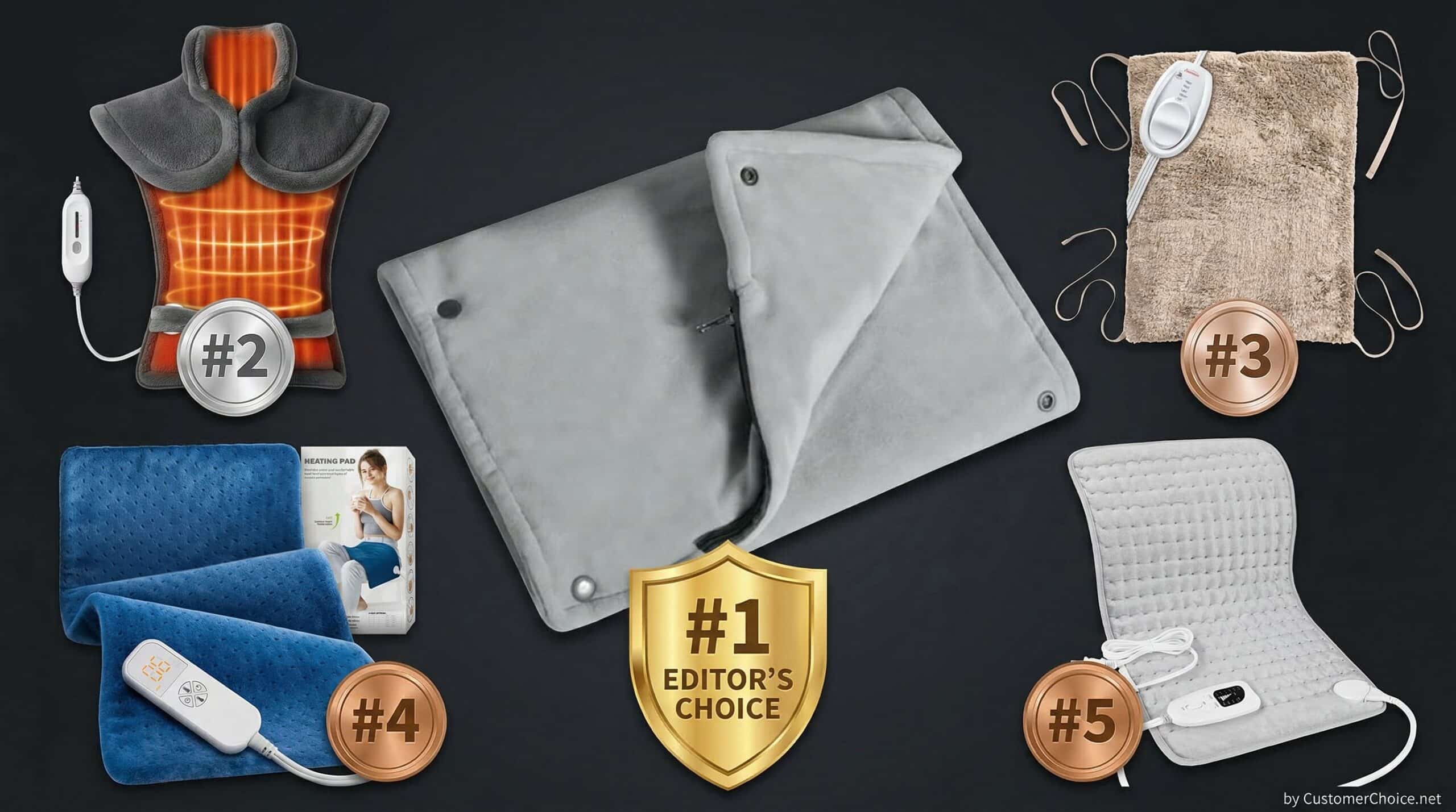 Real-world testing: 6 testers with chronic neck and shoulder stiffness used each pad for 20-minute daily sessions over 6 weeks. Pain relief scored on a 1-10 scale after each session. Testers noted comfort, heat distribution, and whether they could use the pad in their preferred position (desk, couch, bed).